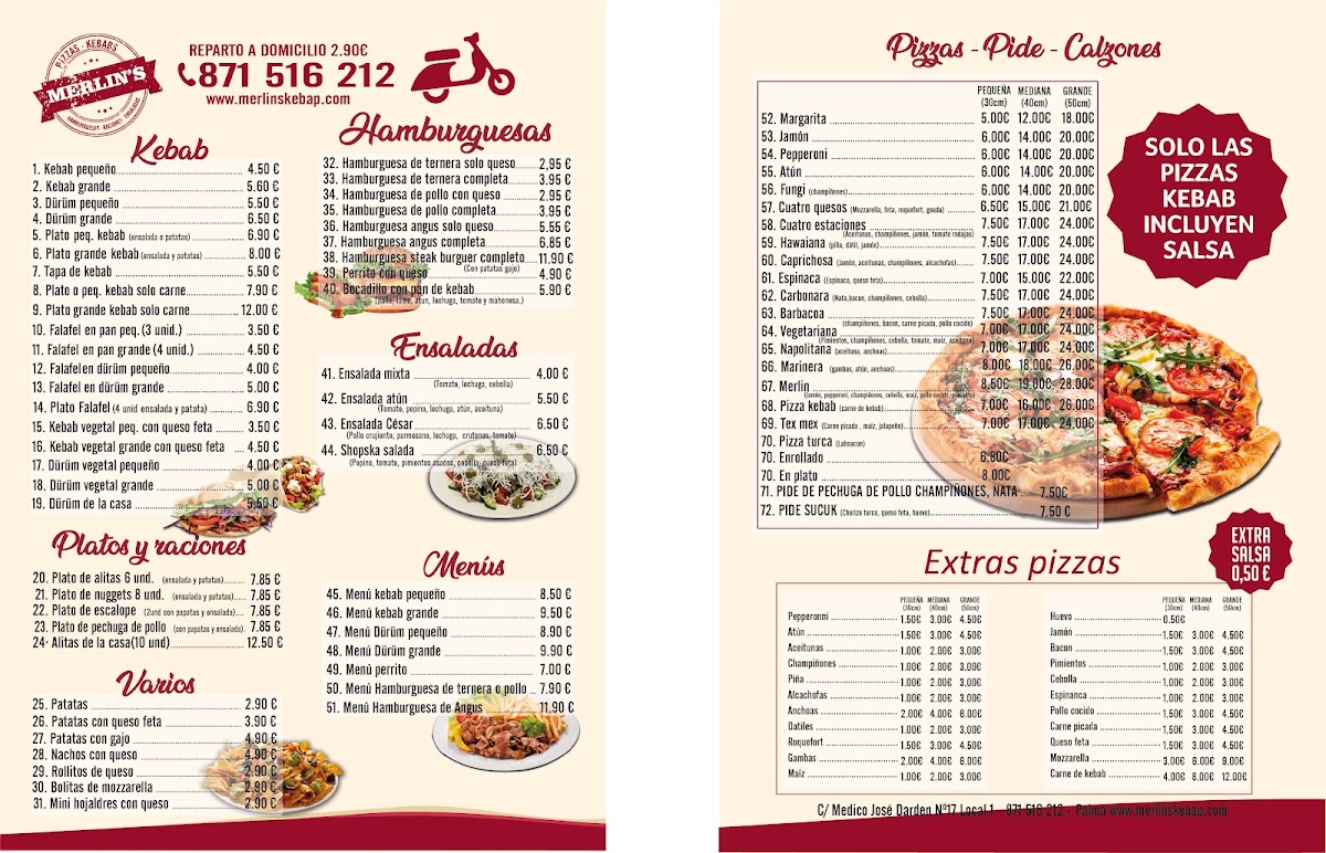 Introducing Merlin's Kebap, an exciting fast food gem located in Palma, Spain. Set on Carrer Josep Darder, this vibrant eatery specializes in delivering mouth-watering kebabs and a host of delightful options like Pizzas, Angus Burgers, and Falafel platters. The standout dishes, such as the Pizza Kebab and generous Plato Kebabs, have earned rave reviews for their size, flavor, and affordability, making them favorites among locals and visitors alike.